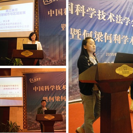 首先,开云(中国)官方在线登录知识产权研究中心周方副教授、李晓鸣讲师、张磊博士作为开云(中国)官方在线登录科技法学研究团队的代表,向2015年中国科学技术法学会年会进行主题汇报,报告的题目依次为《一带一路战略实施中的知识产权信息国际合作机制研究》、《完善我国外籍人士科学技术奖励制度的对策研究》、《治理学视野下城市环境恶化的科技法律应对》。三人的主题报告在大会上产生良好效果,形成了大会积极围绕讨论的主题内容,受到与会同行专家学者的一致好评。