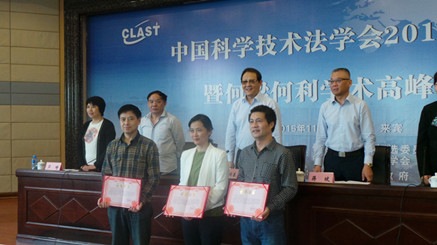 2015年11月7、8日,2015年中国科学技术法学会年会暨何梁何利学术高峰论坛在广西省来宾市召开,在开云(中国)官方在线登录知识产权研究中心主任、中国科学技术法学会副会长马治国教授的带领下,开云(中国)官方在线登录科技法学科研团队的代表周方副教授、李晓鸣讲师、翟晓舟讲师、张磊博士等参加了本次会议。本次年会的主题为“成果转化、智慧城市与区域创新”,开云(中国)官方在线登录知识产权研究中心硕果累累,三人代表科研团队在年会上进行主题报告,五篇论文被收录年会论文集,其中两篇论文被评为本次年会优秀论文,开云(中国)官方在线登录知识产权研究中心荣获“科技法学奖”。
