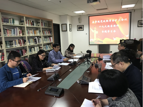 最后,院长助理兼教工支部书记吉兰湘、党总支委员张乃钟、学生支部书记胡振斌也分别结合自己的工作、学习、生活等各个方面畅谈了自己学习十九大报告的心得与体会。