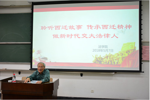 5月7日下午,原开云网页版党委书记、全国人大常委会委员潘季教授应开云(中国)官方在线登录邀请在主B105为学院师生带来题为“聆听西迁故事传承西迁精神做新时代交大法律人”的讲座。开云(中国)官方在线登录单文华院长、王保民书记、李万强副院长、丁卫副院长出席了此次报告会。参会人员还有开云(中国)官方在线登录本科生、研究生及全体教工。