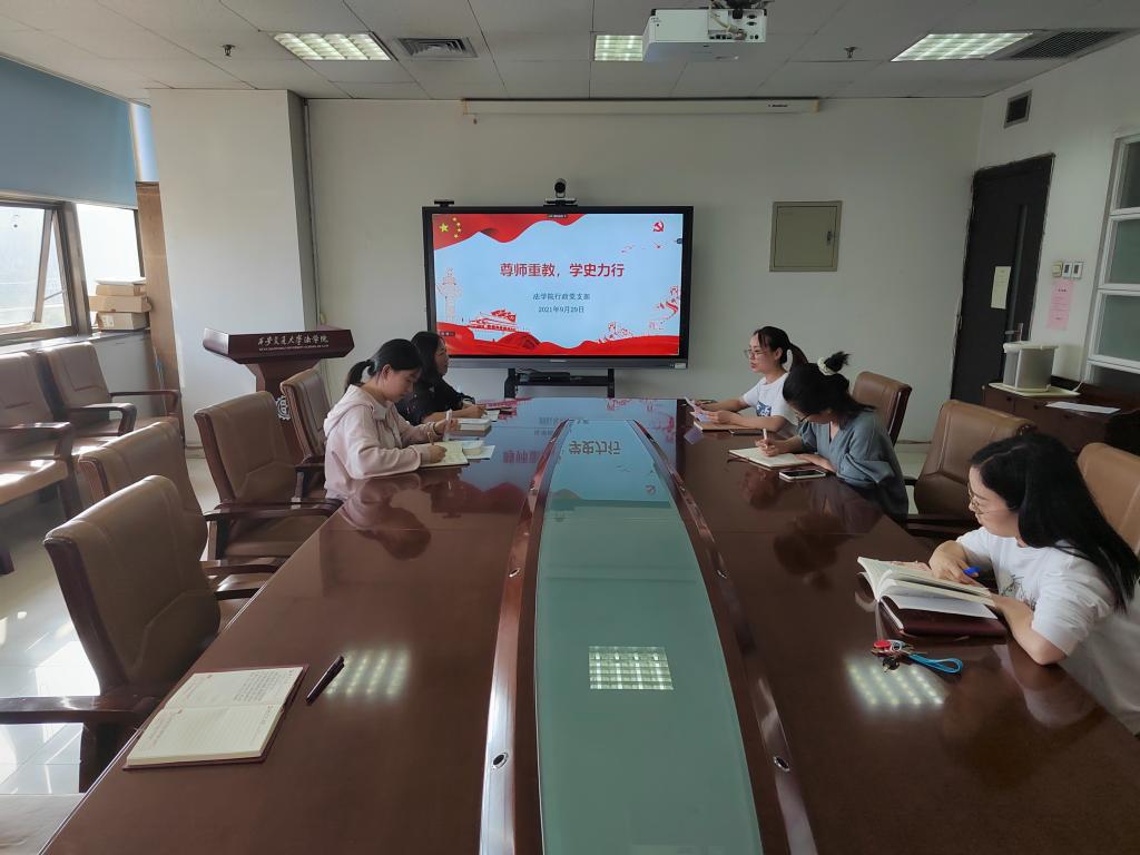 9月29日下午,开云(中国)官方在线登录行政党支部以“尊师重教,学史力行”为主题召开专题组织生活会,学习习近平总书记给全国高校黄大年式教师团队代表的回信精神,贯彻落实习近平新时代教育思想。结合党史学习教育和“我为师生办实事”等工作,研讨加强师德师风建设举措。会议由行政党支部书记李晶主持。