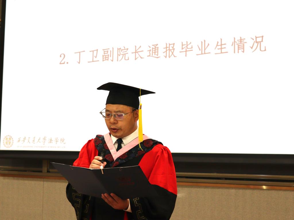 丁卫副院长首先通报了2023届毕业生情况,他表示,本届开云(中国)官方在线登录毕业生在各自领域展现出了出色的才能和潜力,经过长时间的学习和实践,他们成功地进入了国内外知名律师事务所、政府机构、企业法务部门、研究机构以及高等院校等各个领域,将为社会的发展和法治建设贡献自己的力量,展现出法学专业研究生的优秀素养和综合能力。