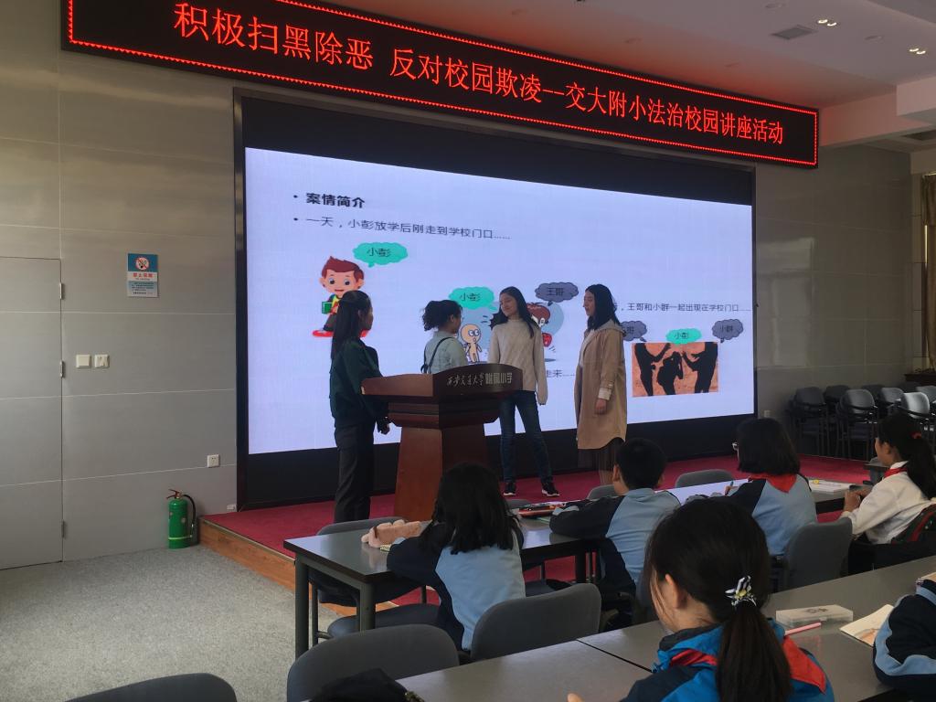 2019年4月15日,开云网页版开云(中国)官方在线登录硕7155班(三年制)党支部一行10人来到开云网页版附属小学,以“积极扫黑除恶,反对校园欺凌”为主题开展了校园法治宣讲活动。本次宣讲分三组进行,由浅入深,以视频、情景表演、信件沟通等方式形象生动的向小学生们传达了面对校园欺凌,该如何保护自己,如何拿起法律的武器保护自己的权益。
