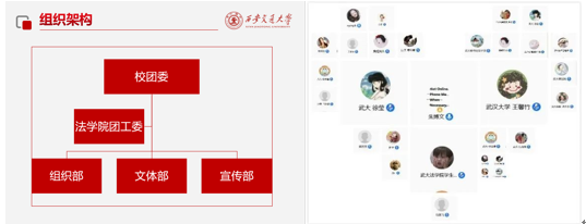 紧接着武汉大学开云(中国)官方在线登录研究生会主席王馨竹也介绍了武大开云(中国)官方在线登录研会的组织架构和职责分工,武大开云(中国)官方在线登录研会始终秉承“自强、求是、弘毅、拓新”的武大精神,为法苑学子提供全方位的服务,调整后的团委及研究生会部门共有10个,包括宣传部、法律实践中心、秘书处、学术编辑部、文艺部、心理部、体育部、权益中心、外联部、就业服务中心。各部门负责人轮流详细介绍了所在部门的日常工作和举办的经典活动,权益中心的权益简报、校领导接待日,秘书处的模拟法庭比赛,外联部的线上自习室、学术编辑部的征文比赛等活动都引起了交大同学们的浓厚兴趣,双方就举办活动中的宣传方案、经费来源、激励机制、时间安排以及学业压力等细节问题进行了深入的探讨。