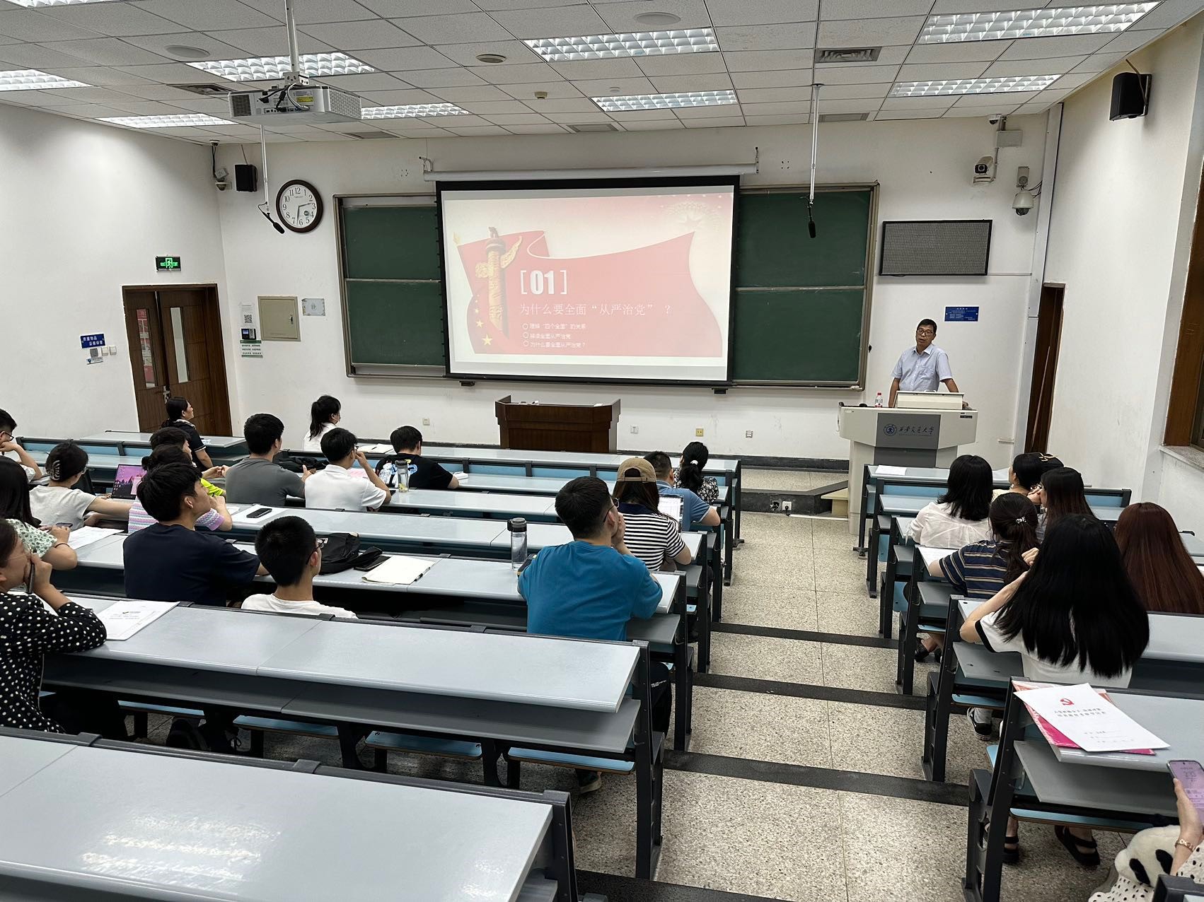 下午,开云(中国)官方在线登录党总支书记、开云网页版立法与党内法规研究中心主任王保民教授为全体发展对象讲授了题为“全面从严治党,锻造坚强领导核心”的主题教育党课。报告中,王保民书记从建党治党的历史沿革、原因分析、历史经验,主要任务、精神原则、具体举措等多个方面深入讲解了全面从严治党制度体系,进一步为同学们未来成为一名忠诚可靠、严守党纪的合格党员打下了坚实理论基础。接着,党总支邀请到马克思主义学院马列读书社的成员郭越、陈瑀峰分别做了题为“赓续伟大建党精神,凝聚青年奋进力量”和“学习贯彻习近平新时代中国特色社会主义思想”的专题报告,鼓励同学们紧紧跟随党的脚步,以赤诚之心,不负时代,努力前行,竭尽全力,为新时代党和国家的事业发展贡献自己的力量。